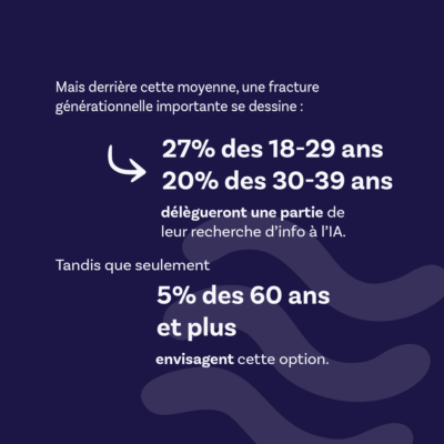 👉 26,5% des 18-29 ans et 20,1% des 30-39 ans délègueront une partie de leur recherche d’info à l’IA (vos futurs clients ?).